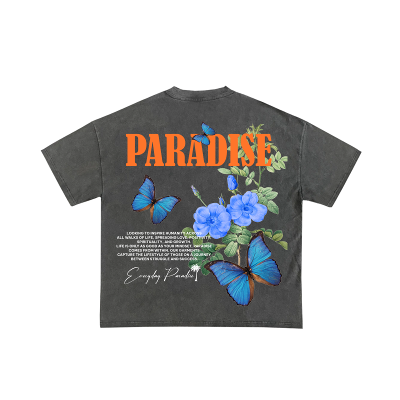 Everyday Paradise's Vintage Black T-Shirt, a captivating blend of nostalgia and nature. Adorned with delicate butterfly illustrations embodies the brand's essence. The back features floral motifs and an inspiring message, encouraging humanity to seek Everyday Paradise. Crafted with care, this tee combines style and comfort effortlessly. Embrace the spirit of positivity and nature with Everyday Paradise's Vintage Black T-Shirt, inspiring your journey to find your own Everyday Paradise